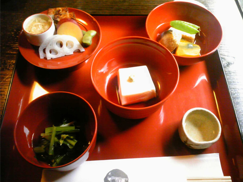 松茸や昆布のおダシを使った本格派精進料理。 手間を省かず一つ一つ丁寧に調理しているそうだけど、そんな理屈抜きにココの優しいお味が大好き!