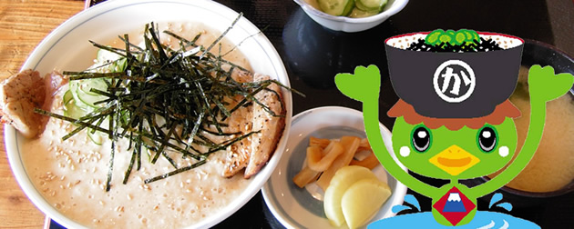 河口湖に残るカッパ伝説から生まれたのが「かっぱめし」。カッパの大好物キュウリと滋養強壮に優れた長芋(大和芋)がどんぶりの中でひとつに出会いました。この「かっぱめし」が、河口湖発のご当地"B級グルメ"としていま注目を集めているんです!