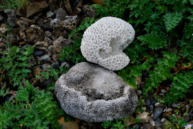 命を終えた珊瑚が土に環えるのを待つ場所です。草花と共に静かに佇む珊瑚は美しい。