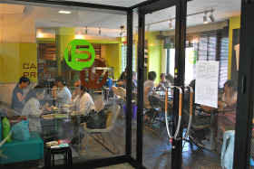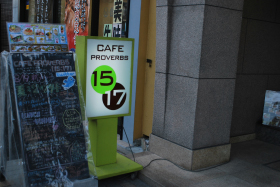 百万遍の交差点にあるのが「CAFÉ PROVERBS(プロバーブス)15:17」さん。