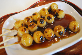 みたらし団子の発祥の地は京都、下鴨神社・糺の森にある「みたらし池」にポコポコと浮かぶ泡からインスピレーションを得て生まれたそうです。(すごい想像力。神さまのお告げですね)。みたらし団子の原点であり、頂点とも言える「加茂みたらし茶屋」さん。その味のとりこになる人が今も絶えません。