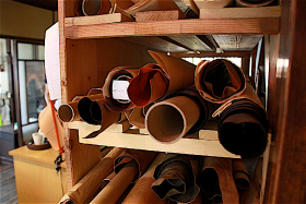 店舗を兼ねた工房には、制作現場の今を感じられます