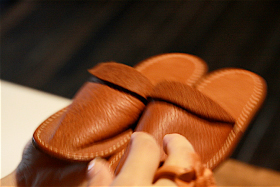 これも、娘さんのスリッパ。仕事もプライベートも垣根のない姿勢。つくることが生活そのものなんでしょうね。
